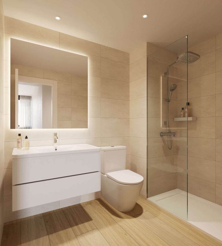 Un espacio privado para tu bienestar. Baños con acabados modernos y elegantes, donde cada detalle está pensado para tu comodidad.