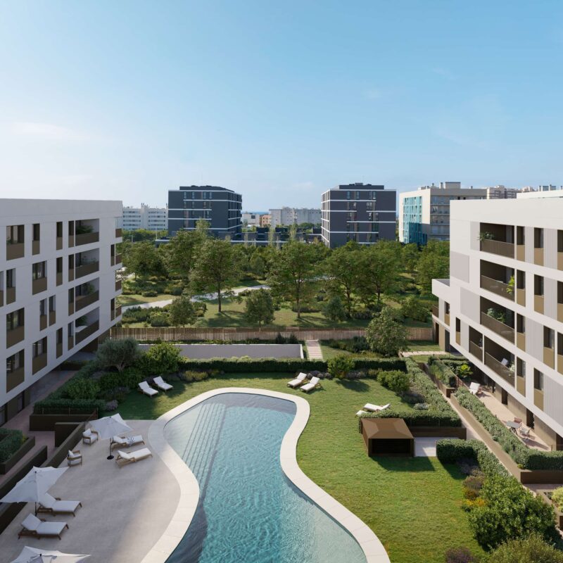 Aire de Llevant, promoción de 99 viviendas de lujo de 1 a 4 habitaciones para disfrutar de una gran calidad de vida a escasos diez minutos andando del Puerto Náutico, del Paseo Marítimo, y la Playa del Portixol. Arquitectura moderna, desde 58 hasta 176 metros cuadrados. Su piscina y amplias áreas ajardinadas comunitarias hacen de esta promoción la opción perfecta para vivir en Palma de Mallorca.