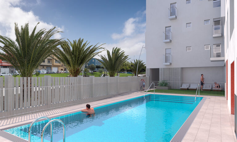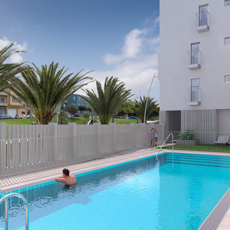 Residencial Tamadaba II, promoción de 189 viviendas de 1 a 3 habitaciones. Arquitectura vanguardista, desde 48,57 metros cuadrados con parte proporcional de zzcc. Esta promoción ha sido diseñada para crear un ambiente privilegiado en Las Palmas de Gran Canaria.