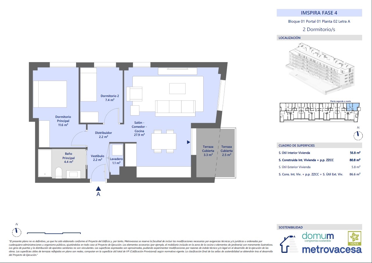 | 2 | 2 | 1 | 87.4 * | 5.8 | Ver plano | 176.500 € ** |
