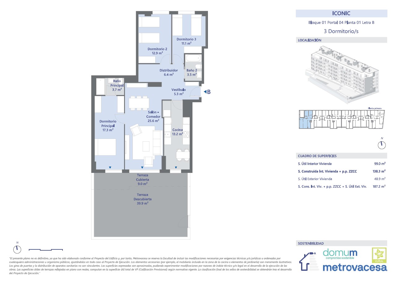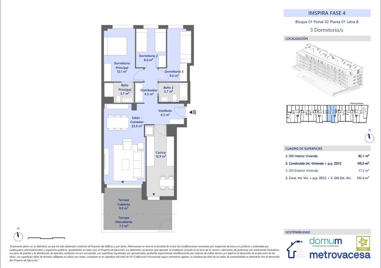 * El ahorro económico y energético mostrado en esta simulación es puramente informativo, por lo tanto, Metrovacesa no tiene ninguna responsabilidad ni obligación sobre dichos resultados. El cálculo se ha hecho basado en los datos incluidos en el documento "Calificación de la eficiencia energética de los edificios" versión 1.1 de Noviembre de 2015, publicado por el IDAE. Ministerio de Industria, Energía y Turismo.