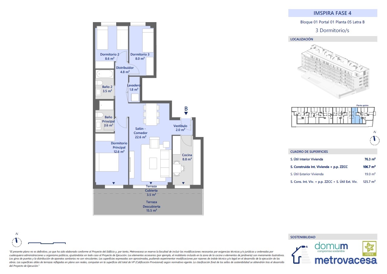 | 5 | 3 | 2 | 125.7 * | 18.7 | Ver plano | 277.000 € ** |