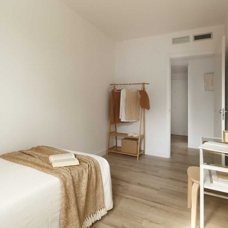 Un espacio de descanso que invita al confort. Habitaciones pensadas para tu bienestar, con acabados de alta calidad y diseño moderno. Despierta cada día en tu nuevo hogar Metrovacesa.