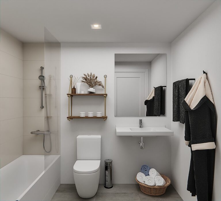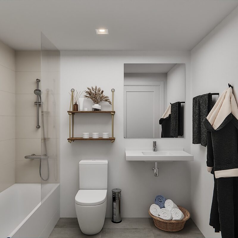 Un espacio privado para tu bienestar. Baños con acabados modernos y elegantes, donde cada detalle está pensado para tu comodidad.