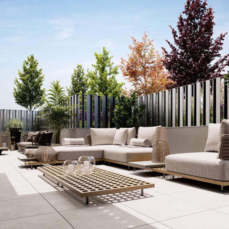 Tu rincón al aire libre. Vive el confort en magníficas terrazas diseñadas para brindarte el espacio ideal donde desconectar y relajarte. El lugar perfecto para disfrutar del aire fresco, convirtiendo cada momento en una experiencia de bienestar.