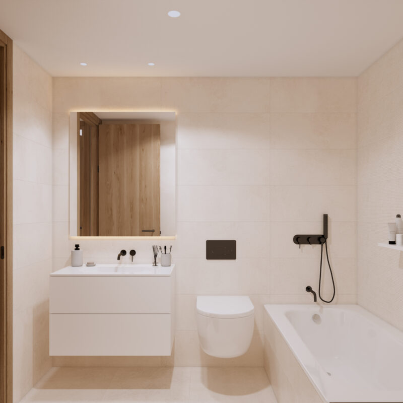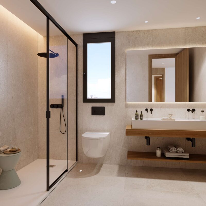 Un espacio privado para tu bienestar. Baños con acabados modernos y elegantes, donde cada detalle está pensado para tu comodidad.