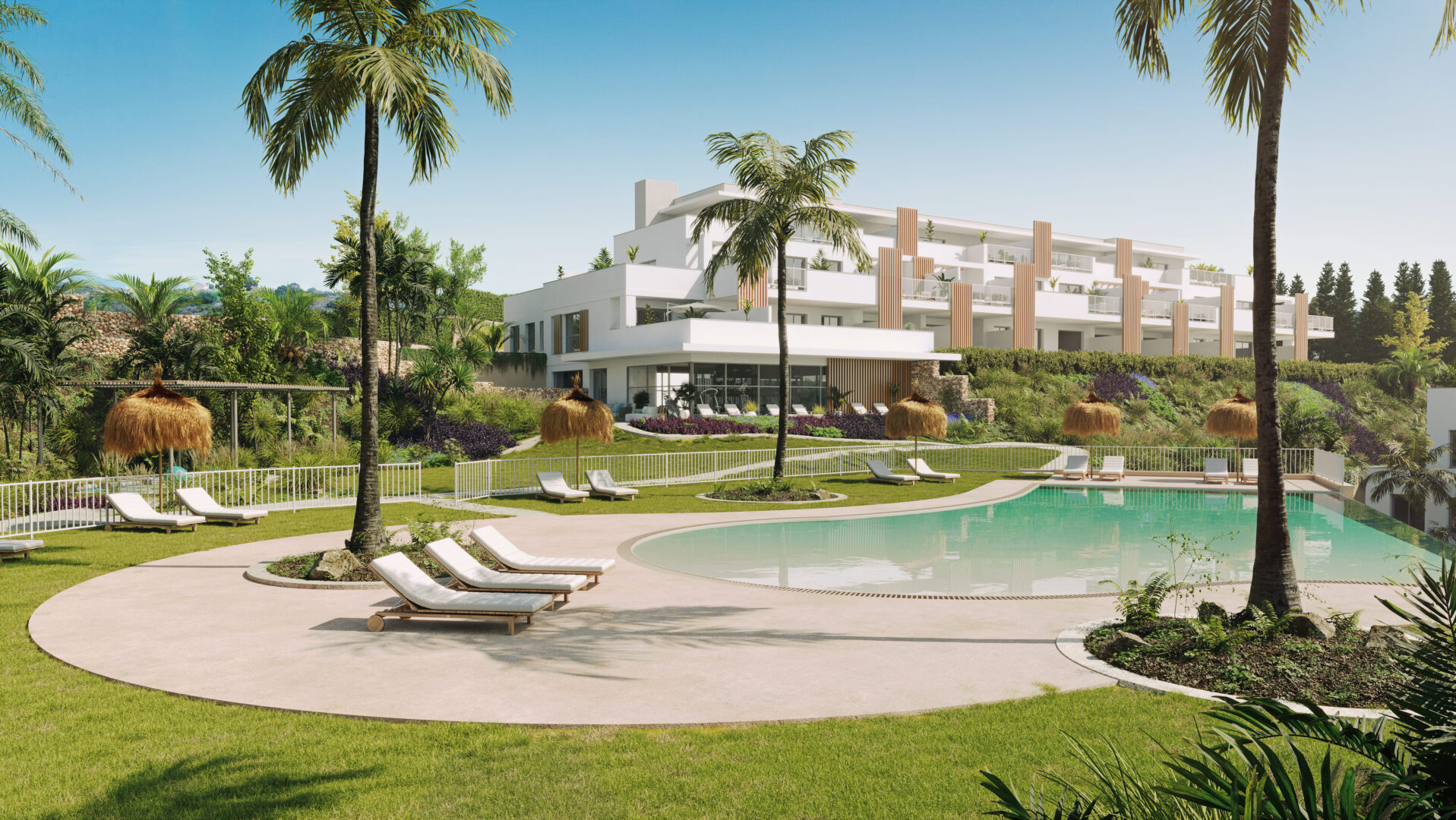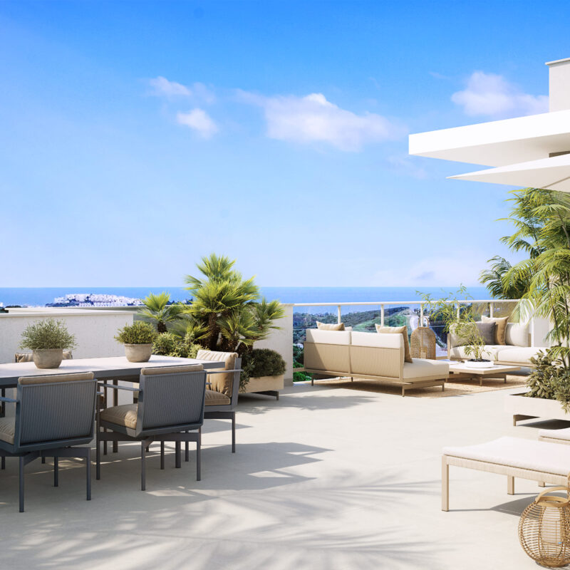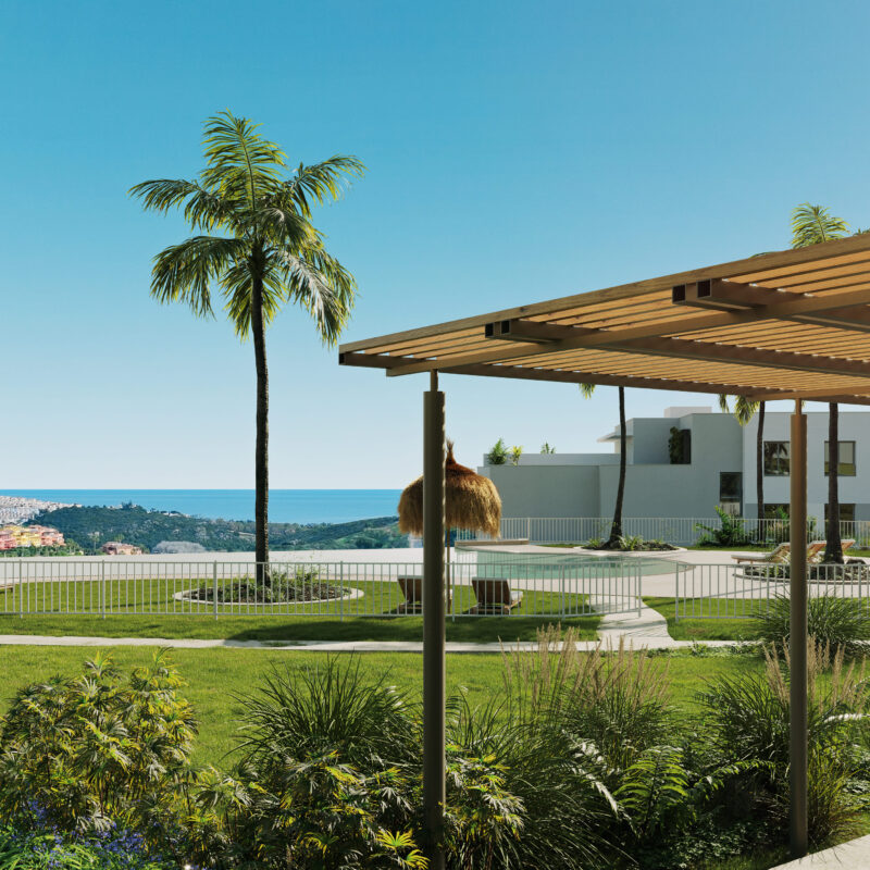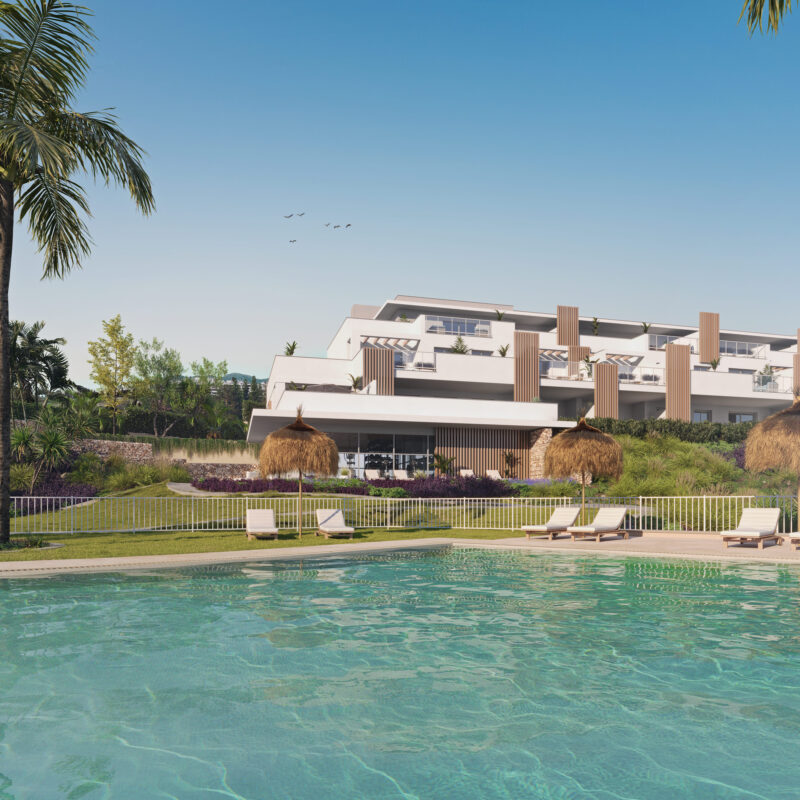 ABRIL tiene espacios para todos: piscina infinity con playa, gimnasio, spa, espacio zen, espacio calistenia, un mirador para observar las maravillosas vistas al golf y al mar y espacios ajardinados que te harán sentir en el paraíso.