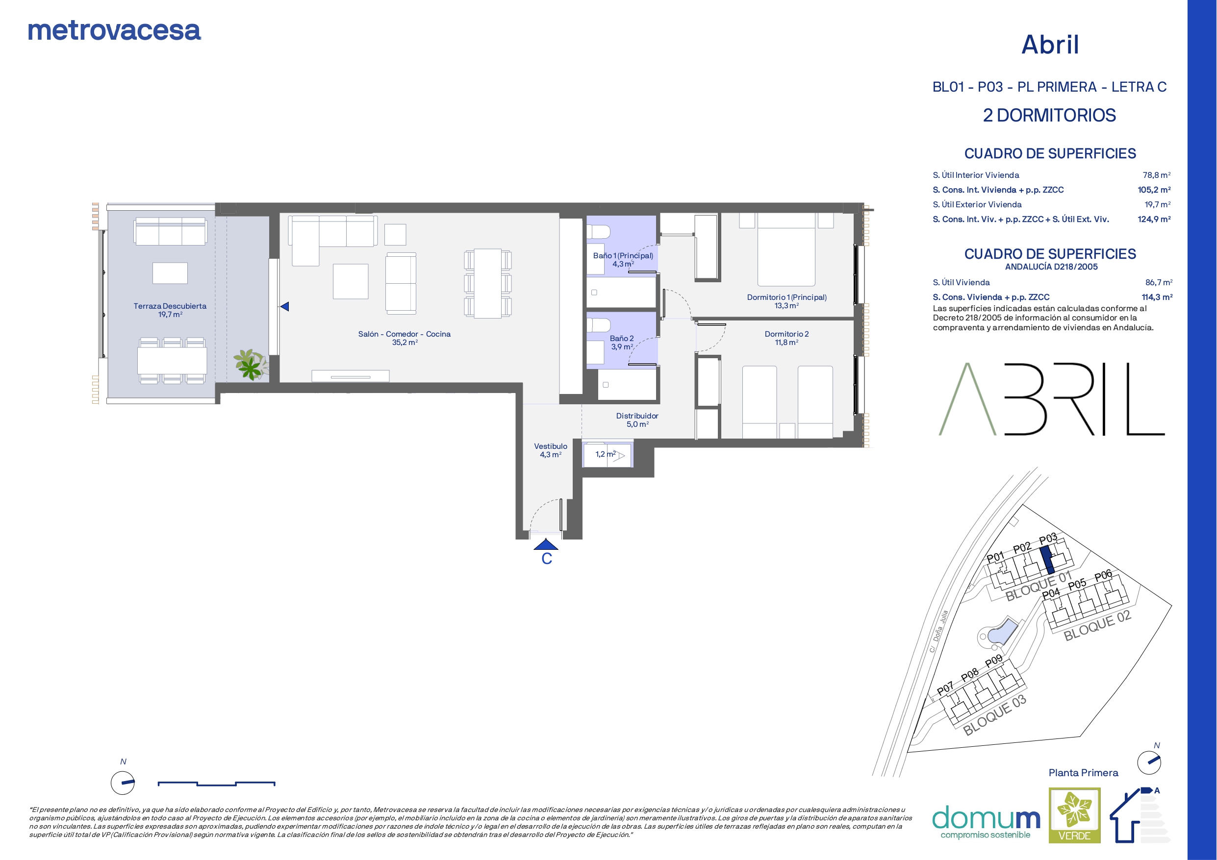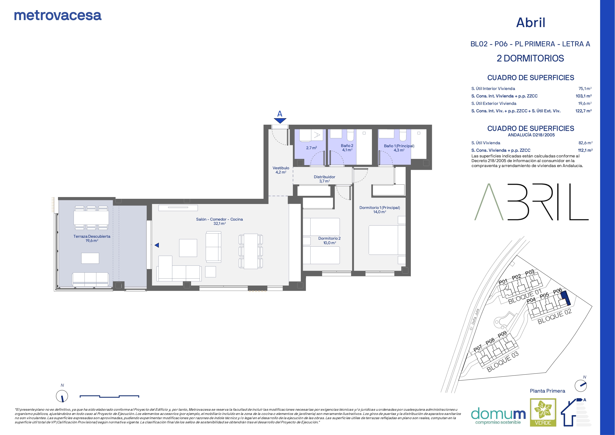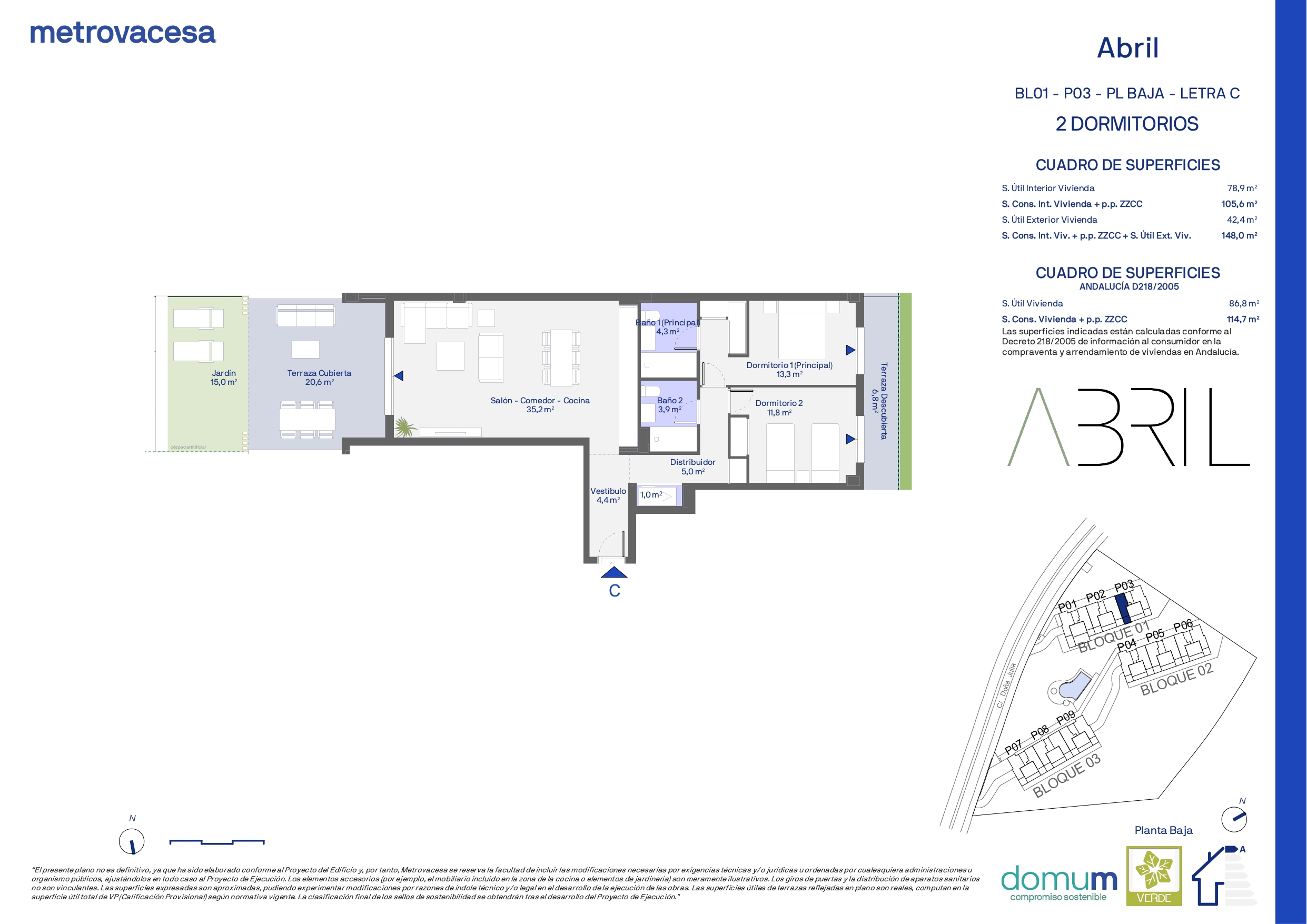ABRIL, presenta 65 viviendas de 2 y 3 dormitorios, todas equipadas con aparcamiento y trastero. Todos los espacios, entre los que podemos encontrar bajos con jardín y áticos con generosas terrazas, están diseñados hasta el último detalle, para poder disfrutar de unas vistas despejadas al mar y al paisaje verde que rodea el complejo.