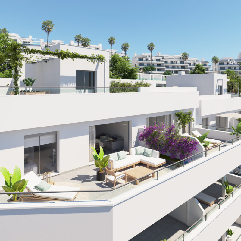Oceana Gardens I, promoción de 52 exclusivas viviendas plurifamiliares de 2 y 3 habitaciones situada en el privilegiado entorno de la Milla de Oro de Estepona. Su arquitectura vanguardista se combina con los beneficios de sus zonas comunes dotadas de piscina exterior y zona coworking, gimnasio equipado, dos pistas de petanca ameteur, ciclosenda y acceso al Club House, exclusivo para los residentes.