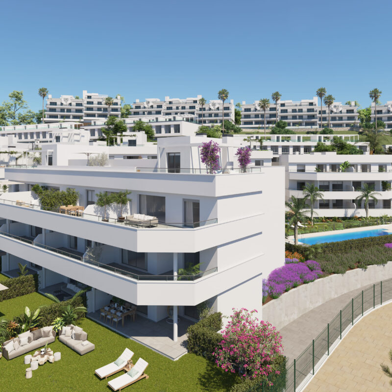 Oceana Gardens I, promoción de 56 exclusivas viviendas unifamiliares y plurifamiliares de 2 y 3 habitaciones situada en el privilegiado entorno de la Milla de Oro de Estepona. Su arquitectura vanguardista se combina con los beneficios de sus zonas comunes dotadas de piscina exterior y zona coworking, gimnasio equipado, dos pistas de petanca ameteur, ciclosenda y acceso al Club House, exclusivo para los residentes.