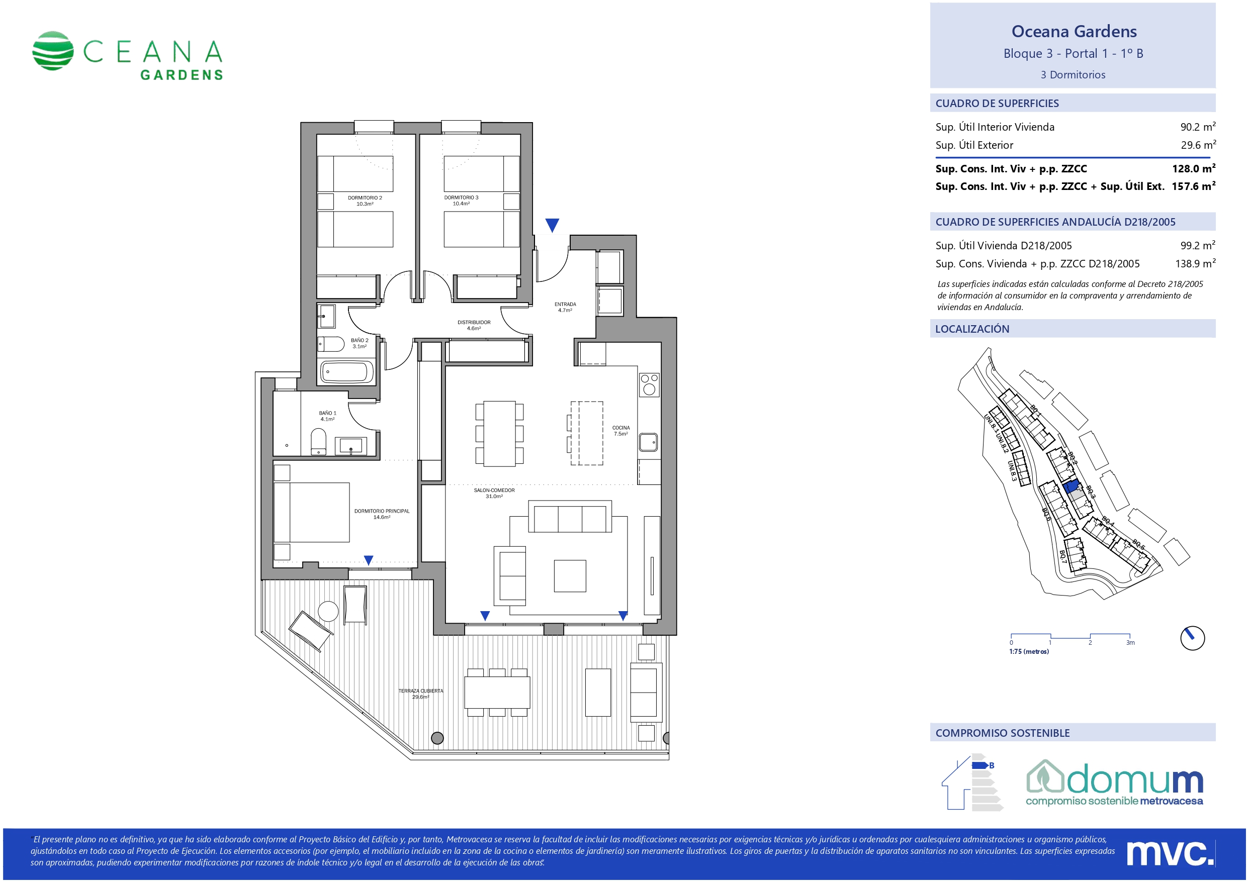 Las viviendas disfrutan de amplias terrazas con orientación suroeste. Esta promoción conjuga los acabados de calidad, amplitud en espacios interiores y exteriores y la sostenibilidad, al contar con el sello DOMUM. Oceana Gardens II ha sido diseñada pensando en crear un nuevo estilo de vida.