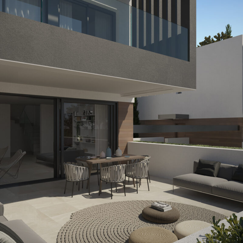 33 villas pareadas de 3 dormitorios con opción de jardín, solárium y sótano.