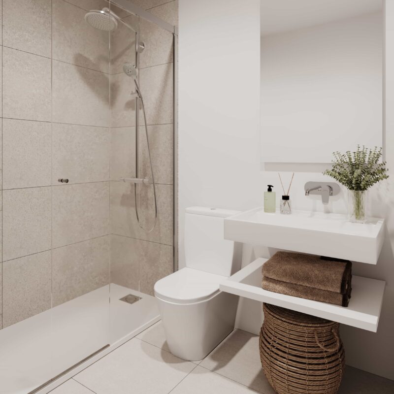 Un espacio privado para tu bienestar. Baños con acabados modernos y elegantes, donde cada detalle está pensado para tu comodidad.