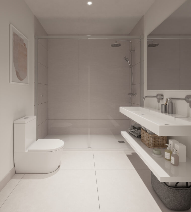 Un espacio privado para tu bienestar. Baños con acabados modernos y elegantes, donde cada detalle está pensado para tu comodidad.