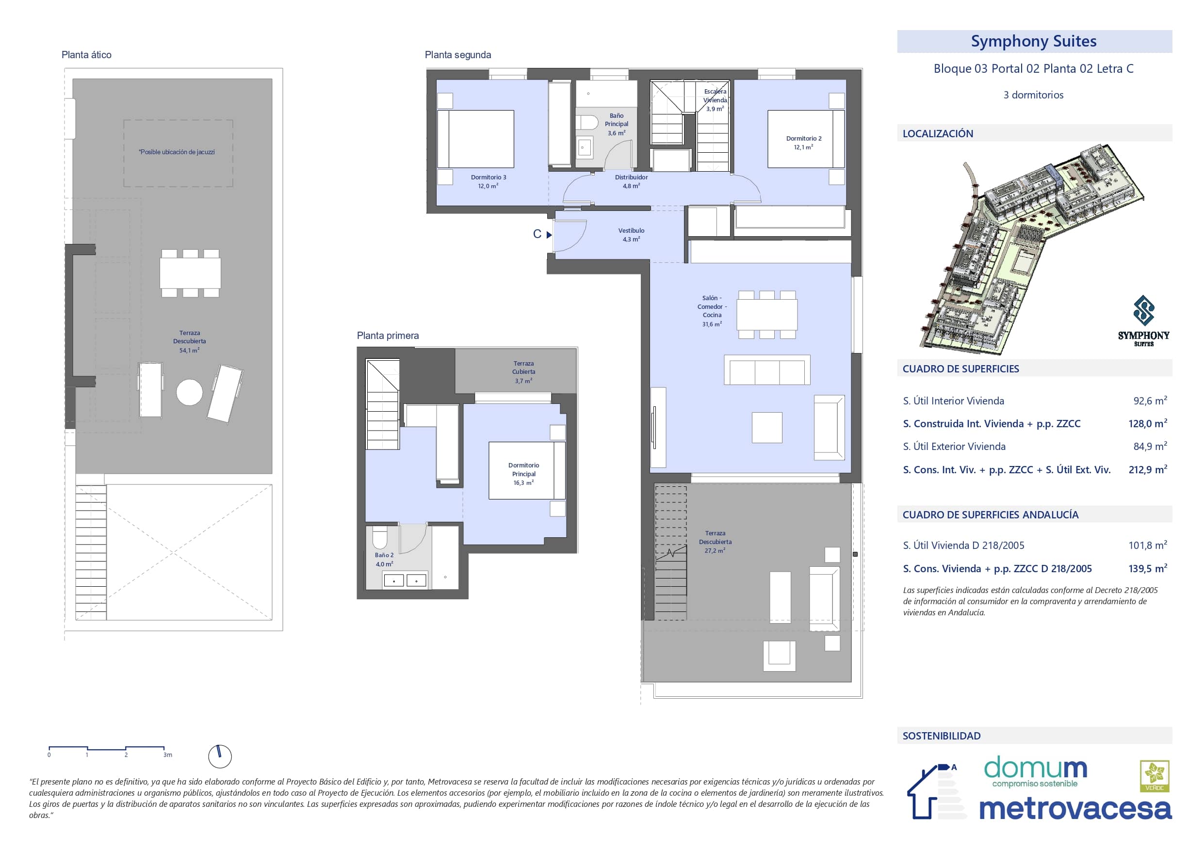* El ahorro económico y energético mostrado en esta simulación es puramente informativo, por lo tanto, Metrovacesa no tiene ninguna responsabilidad ni obligación sobre dichos resultados. El cálculo se ha hecho basado en los datos incluidos en el documento "Calificación de la eficiencia energética de los edificios" versión 1.1 de Noviembre de 2015, publicado por el IDAE. Ministerio de Industria, Energía y Turismo.