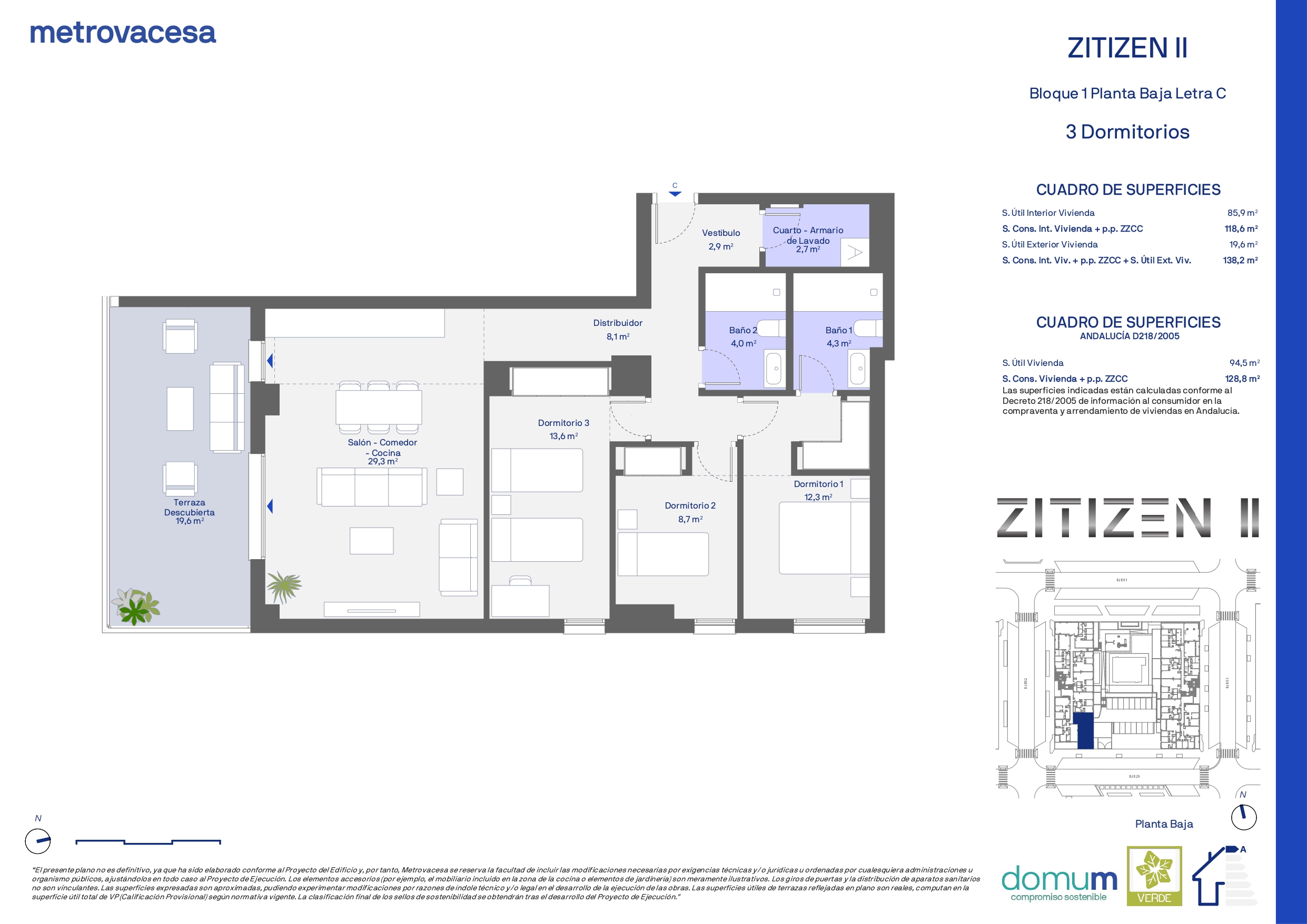 | 3 | 3 | 2 | 118.9 | 10.6 | Ver plano | 415.000 € *** |