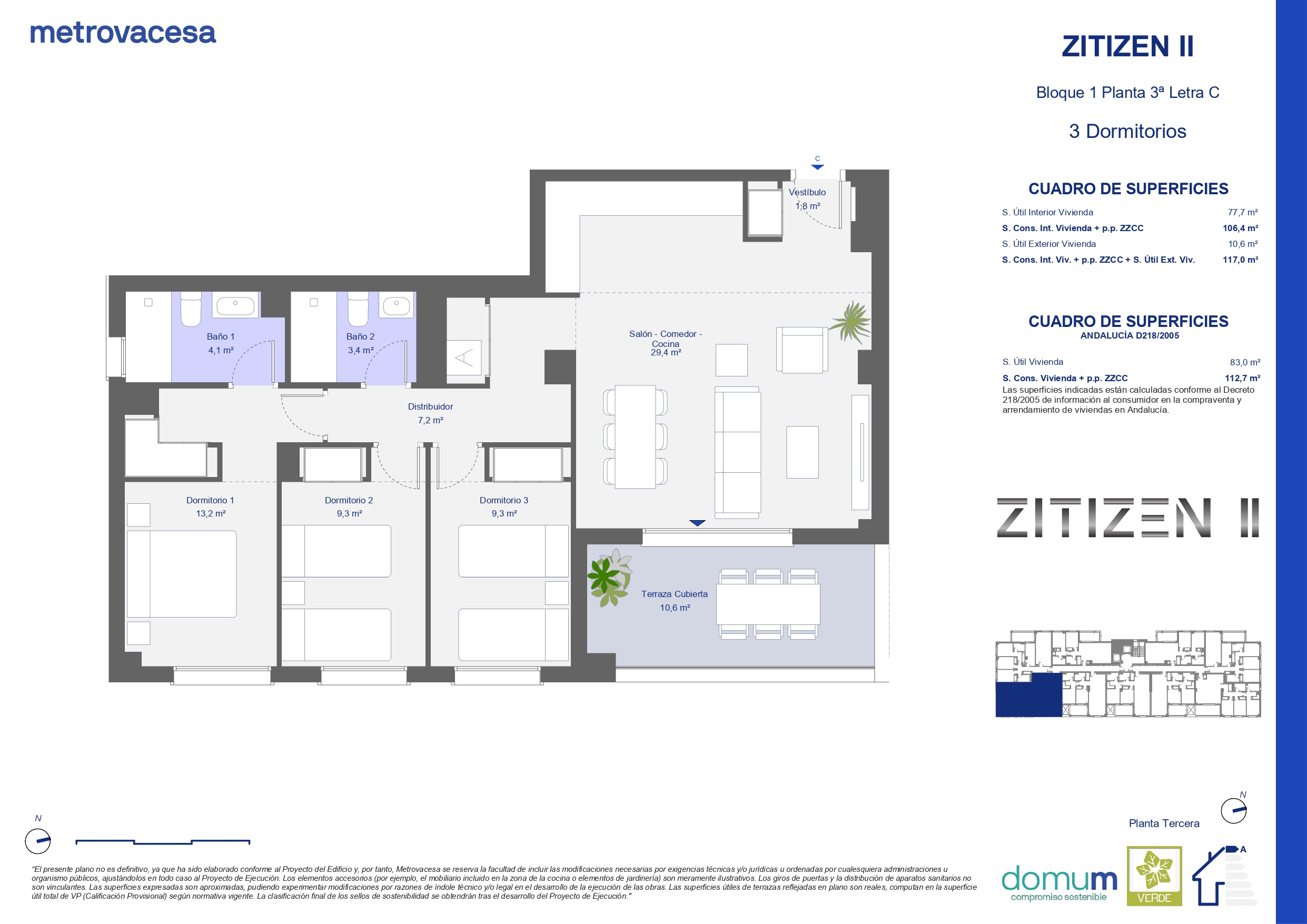 * El ahorro económico y energético mostrado en esta simulación es puramente informativo, por lo tanto, Metrovacesa no tiene ninguna responsabilidad ni obligación sobre dichos resultados. El cálculo se ha hecho basado en los datos incluidos en el documento "Calificación de la eficiencia energética de los edificios" versión 1.1 de Noviembre de 2015, publicado por el IDAE. Ministerio de Industria, Energía y Turismo.
