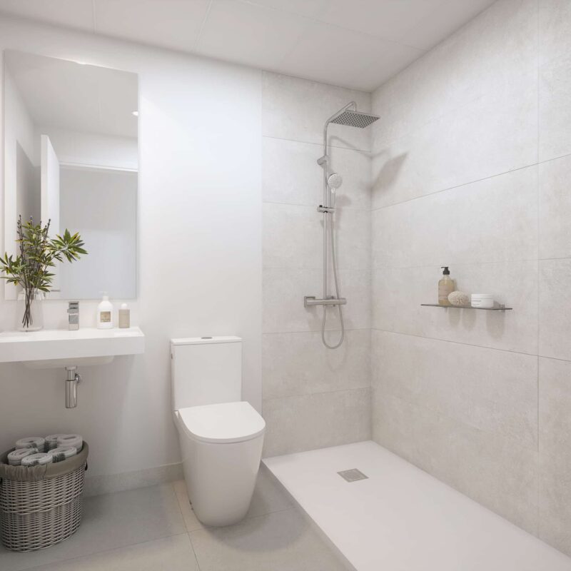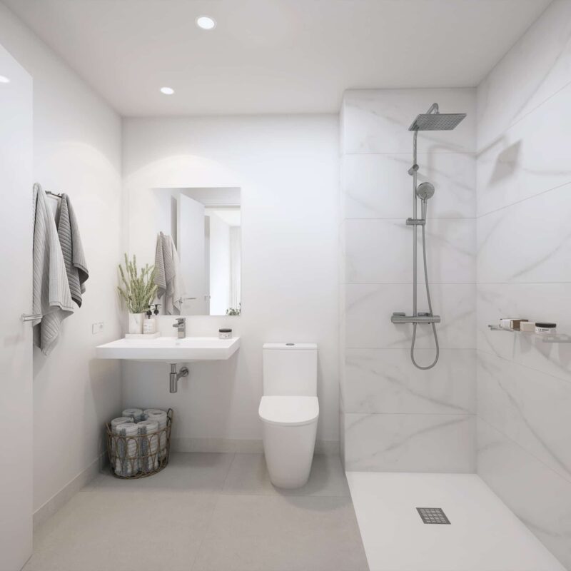 Un espacio privado para tu bienestar. Baños con acabados modernos y elegantes, donde cada detalle está pensado para tu comodidad.