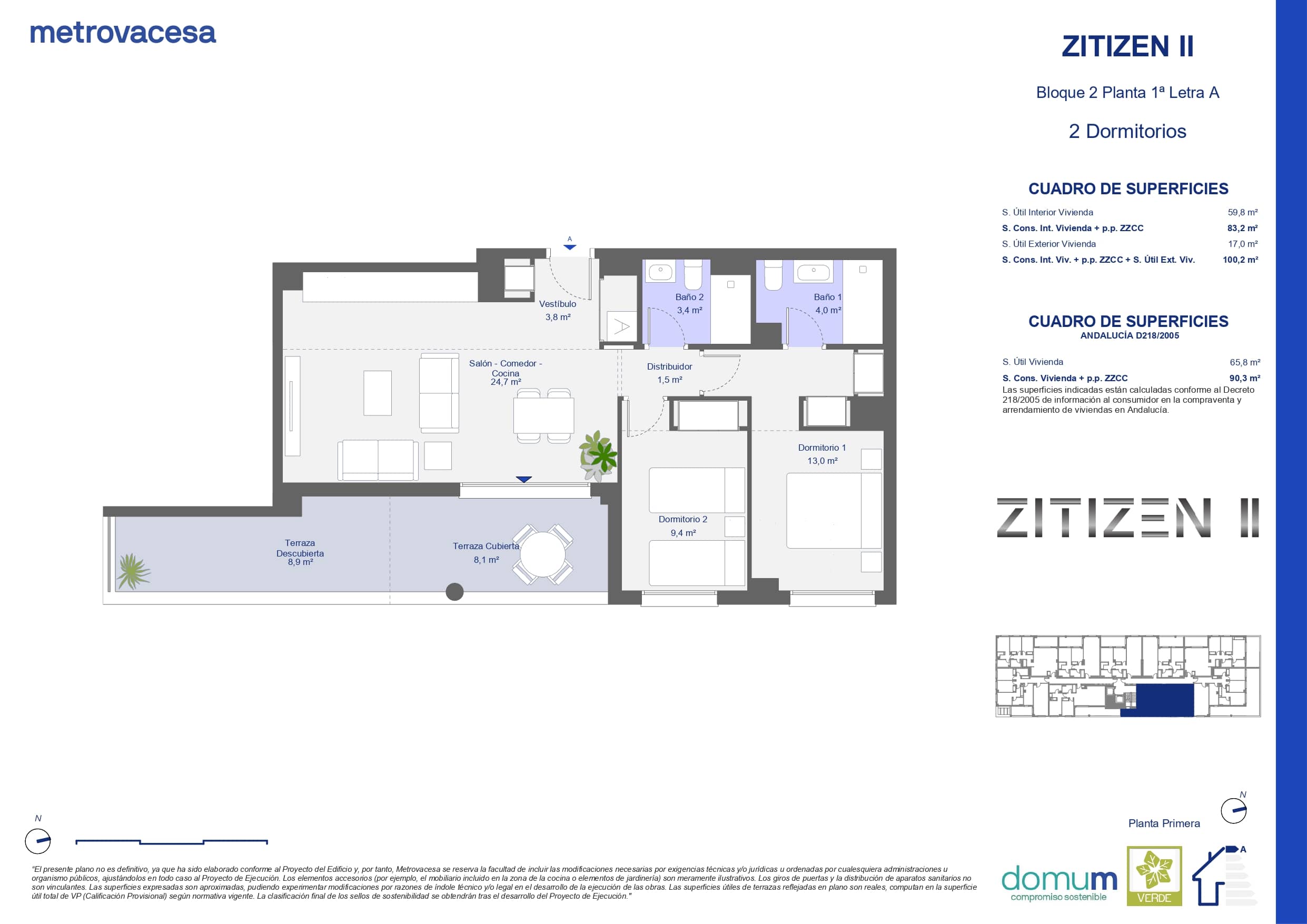 | 1 | 2 | 2 | 100.2 * | 17 | Ver plano | 338.000 € *** |