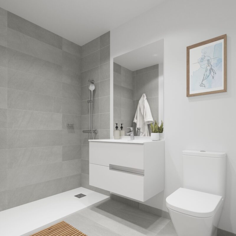 Un espacio privado para tu bienestar. Baños con acabados modernos y elegantes, donde cada detalle está pensado para tu comodidad.
