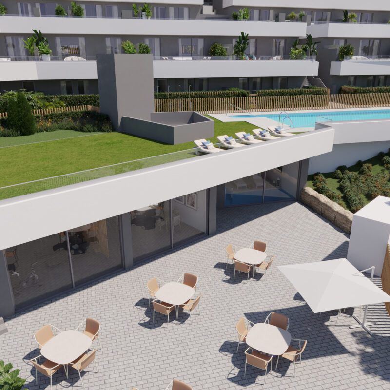 Todas las viviendas de Blue Marine incluyen una plaza de aparcamiento incluido en el precio y unas magníficas zonas comunes dotadas de piscina exterior e interior, zona de co-working y gimnasio equipado para disfrute exclusivo de sus residentes.