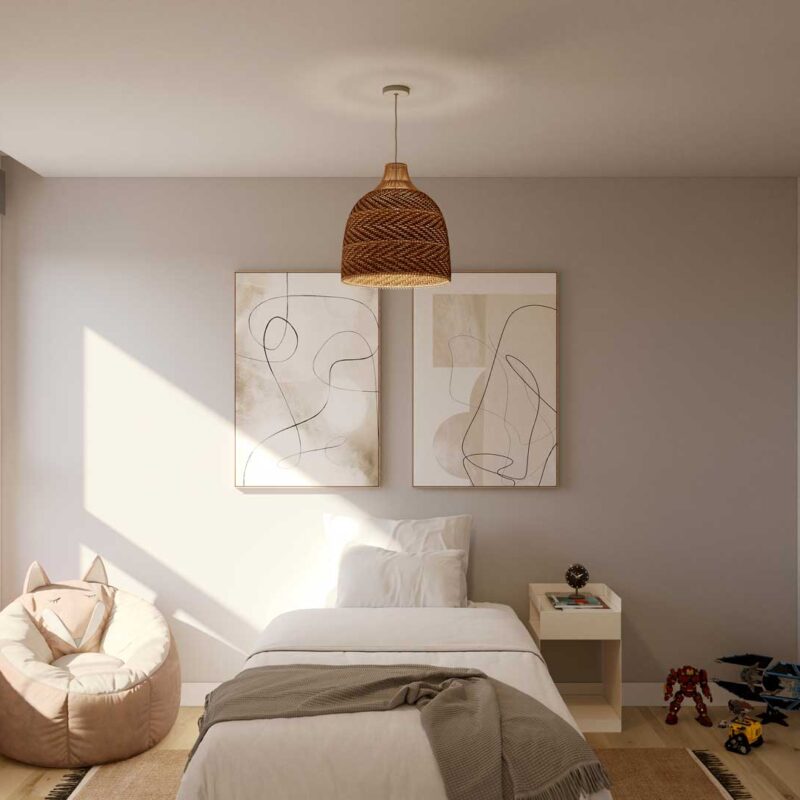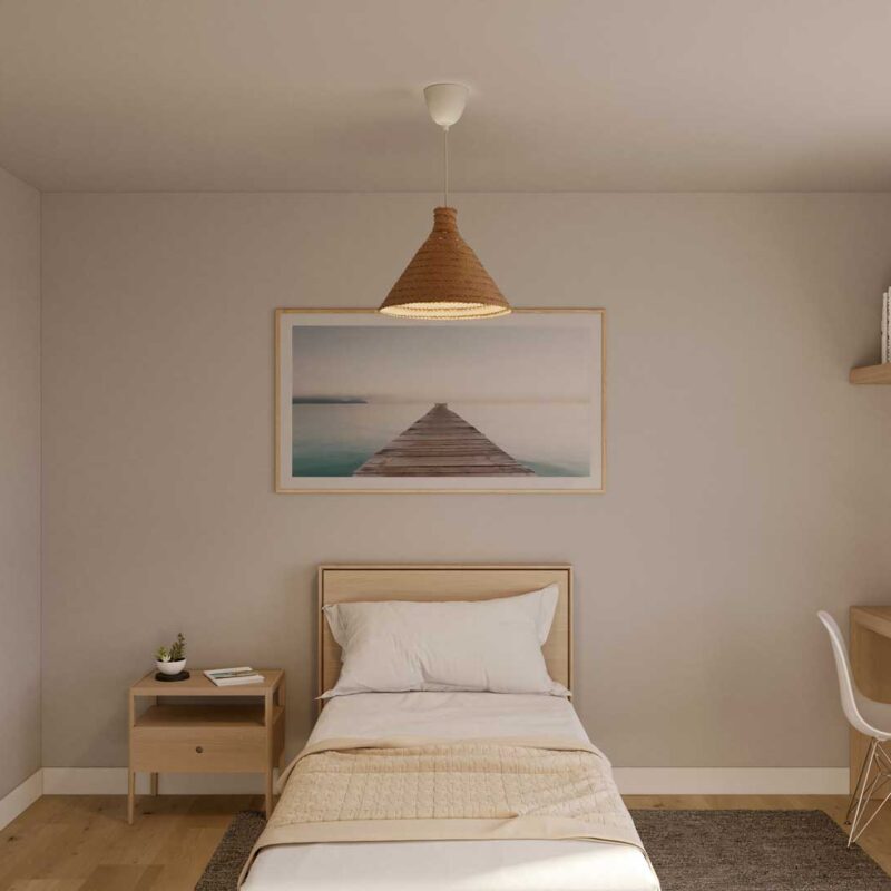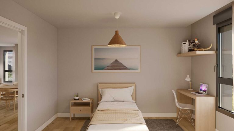 Un espacio de descanso que invita al confort. Habitaciones pensadas para tu bienestar, con acabados de alta calidad y diseño moderno. Despierta cada día en tu nuevo hogar Metrovacesa.