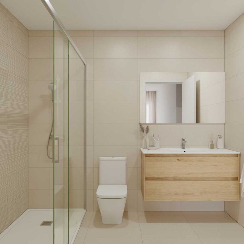 Un espacio privado para tu bienestar. Baños con acabados modernos y elegantes, donde cada detalle está pensado para tu comodidad.