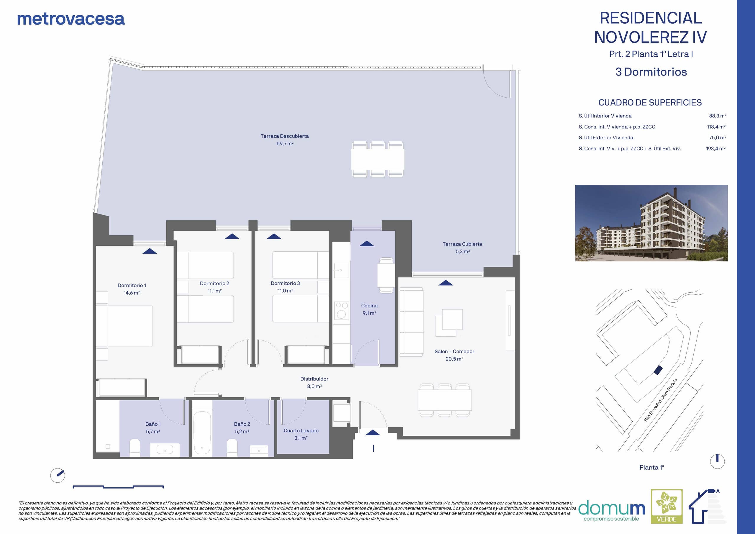 ¡Inicio de construcción! Residencial Novolérez IV es una promoción de 133 viviendas de 1 a 4 dormitorios con plaza de garaje y trastero. El edificio cuenta con 7 alturas y dos sótanos además de 1 local comercial en planta baja. Todas las viviendas tienen terraza cubierta y los áticos disponen de terraza descubierta. La promoción cuenta con gimnasio, local social y jardines comunitarios.