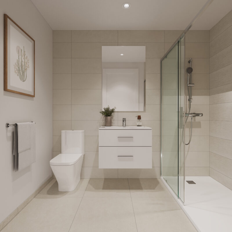 Un espacio privado para tu bienestar. Baños con acabados modernos y elegantes, donde cada detalle está pensado para tu comodidad.