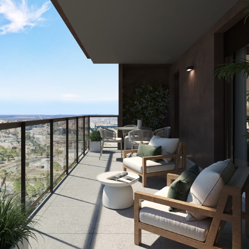 Tu rincón al aire libre. Vive el confort en magníficas terrazas diseñadas para brindarte el espacio ideal donde desconectar y relajarte. El lugar perfecto para disfrutar del aire fresco, convirtiendo cada momento en una experiencia de bienestar.