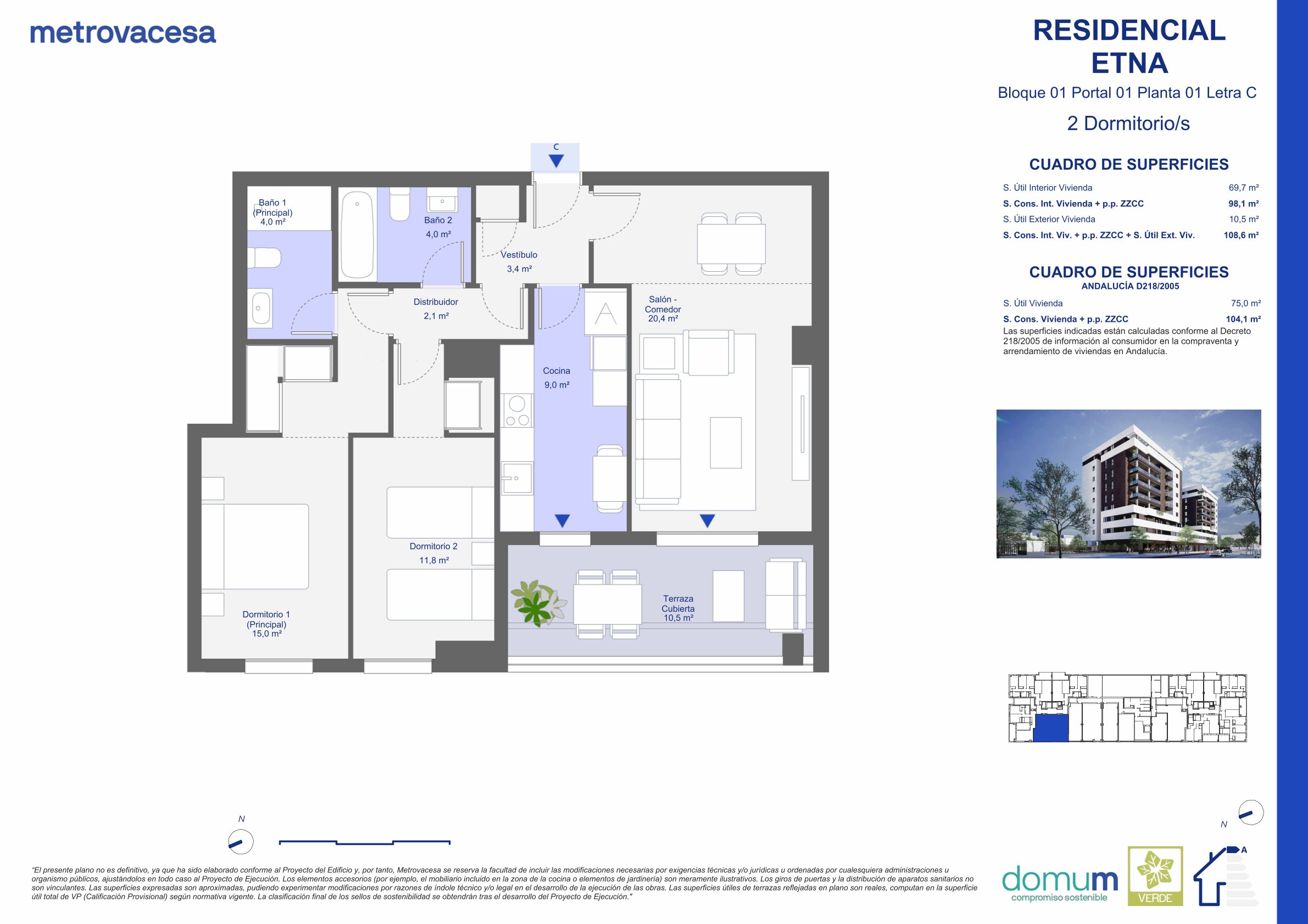 | 1 | 2 | 2 | 108.6 * | 10.5 | Ver plano | 286.000 € *** |