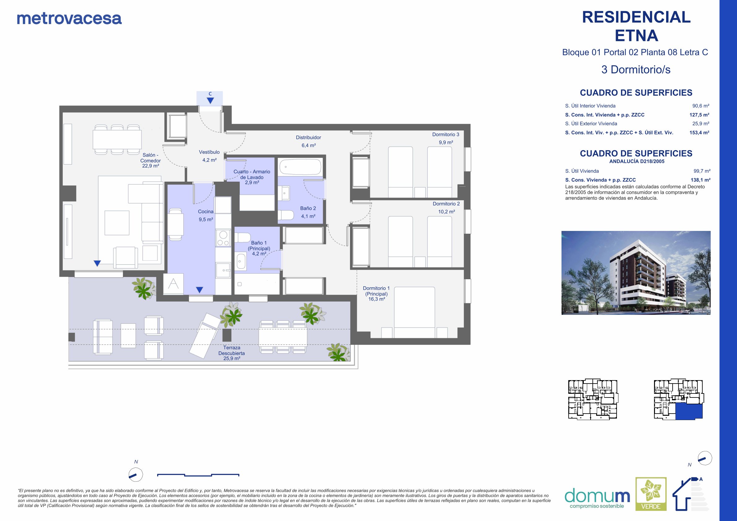 | 8 | 3 | 2 | 153.4 * | 25.9 | Ver plano | 418.000 € *** |
