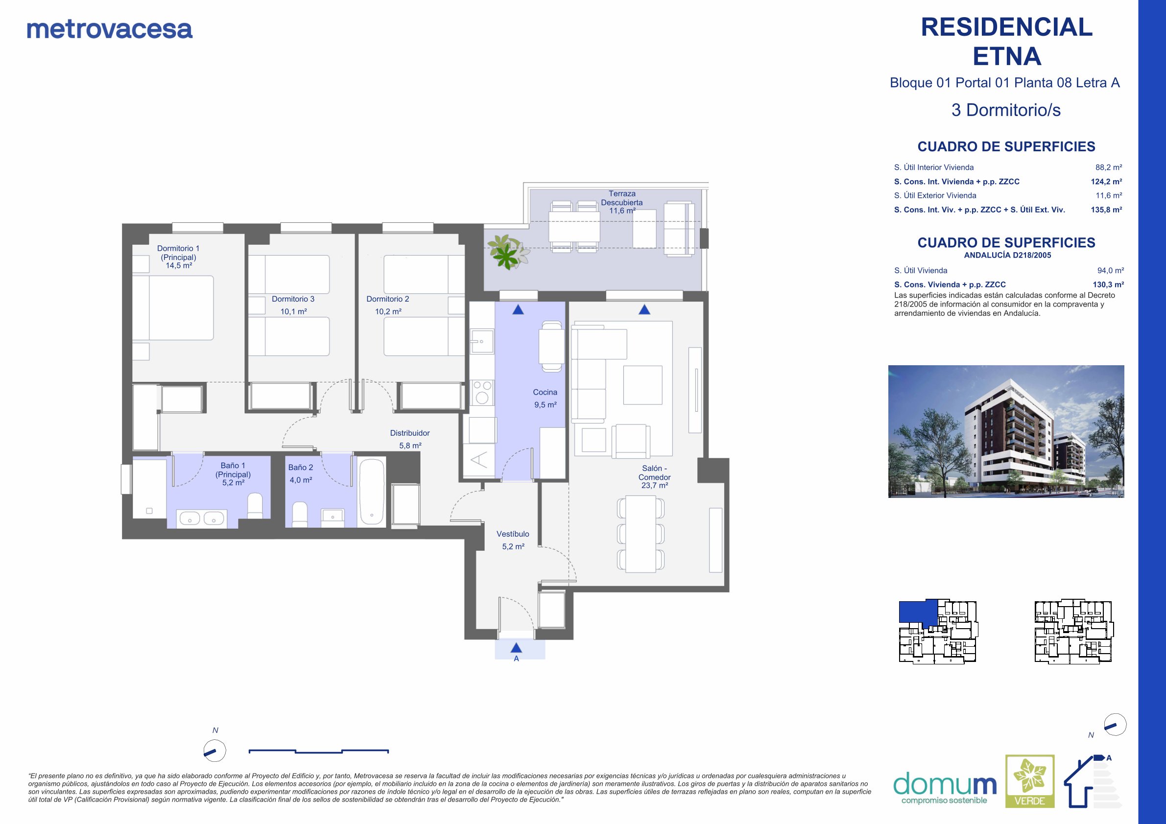 | 8 | 3 | 2 | 135.8 * | 11.6 | Ver plano | 404.000 € *** |