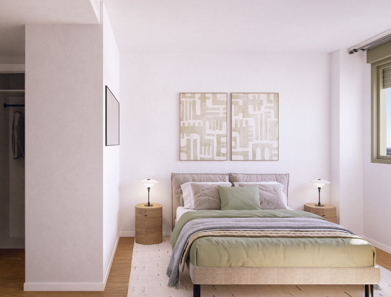 Un espacio de descanso que invita al confort. Habitaciones pensadas para tu bienestar, con acabados de alta calidad y diseño moderno. Despierta cada día en tu nuevo hogar Metrovacesa.