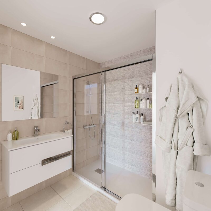 Un espacio privado para tu bienestar. Baños con acabados modernos y elegantes, donde cada detalle está pensado para tu comodidad.