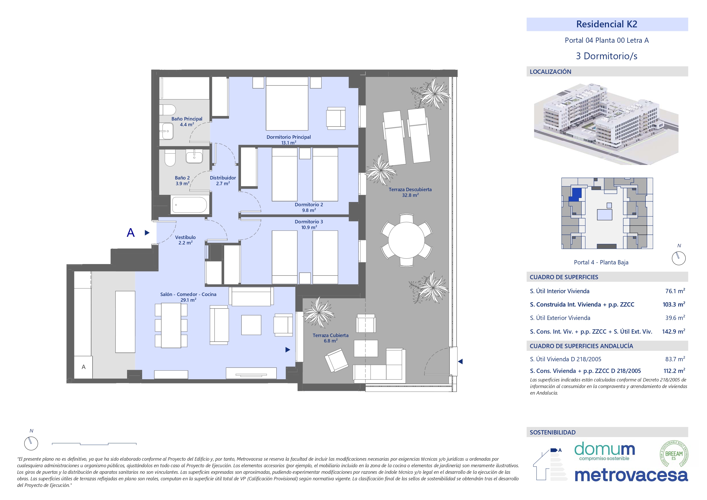 El residencial ha sido diseñado en estructura de manzana abierta al Sur, lo que le otorga un nivel máximo de confort.