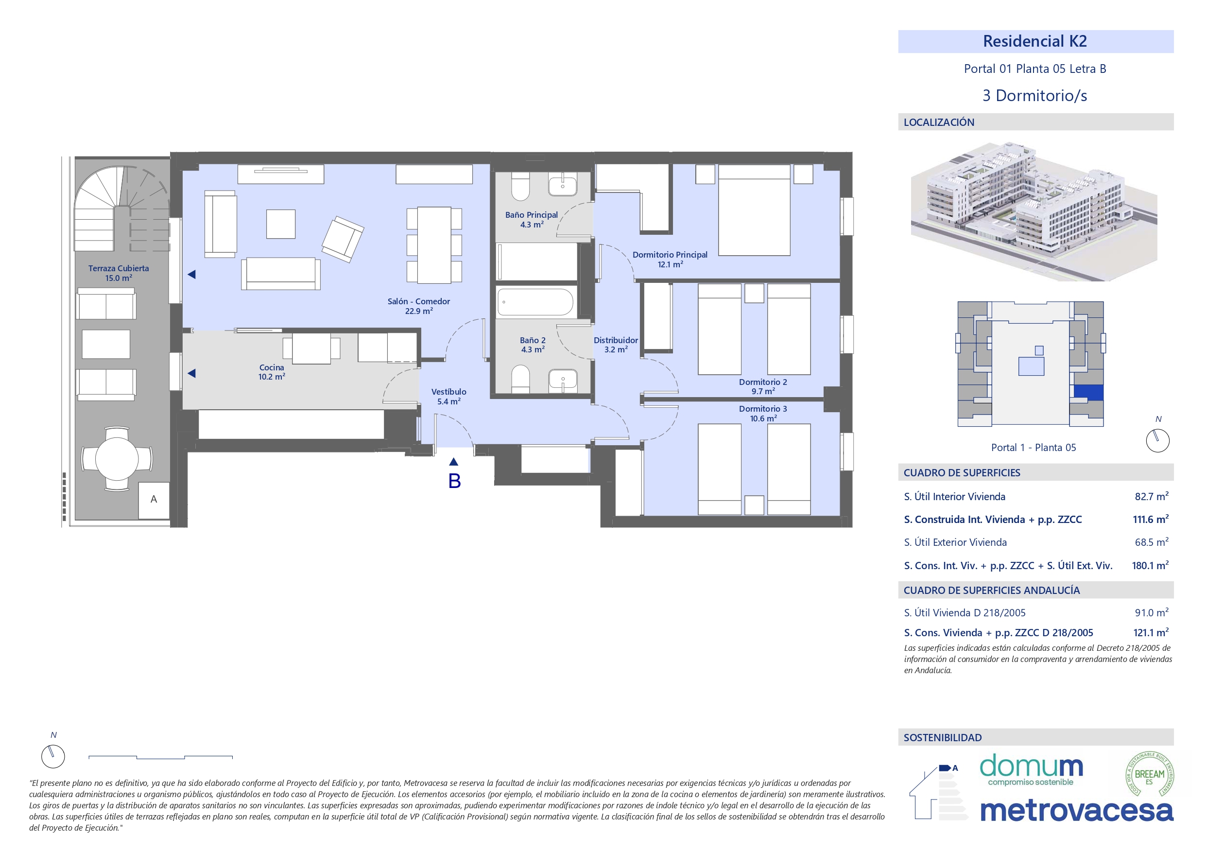 Esta nueva promoción, además de haber sido desarrollada con los estándares de calidad y sostenibilidad habituales de Metrovacesa, contará con el prestigioso sello de sostenibilidad BREEAM.