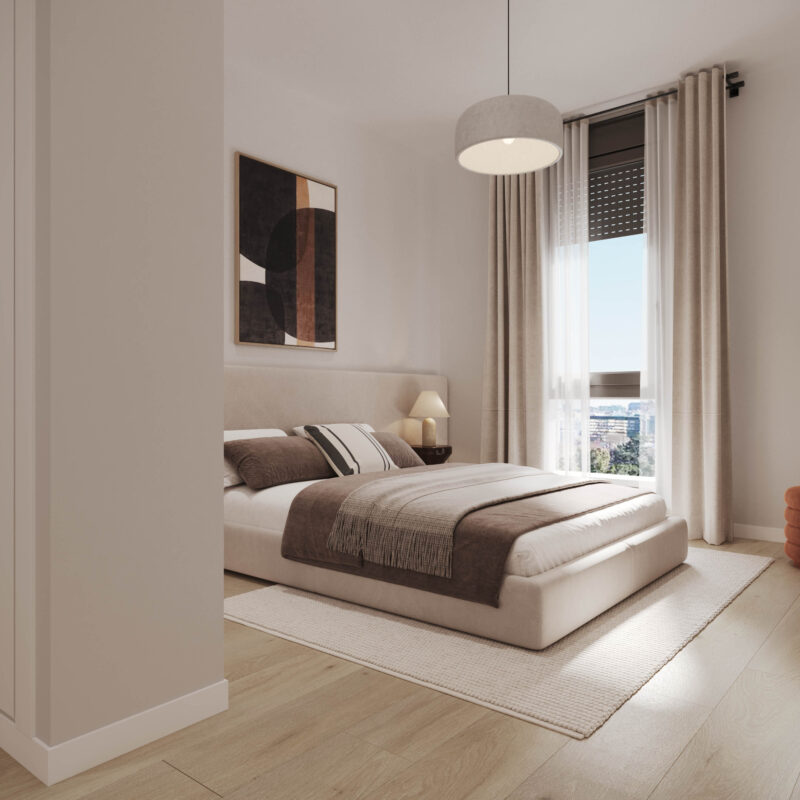 Un espacio de descanso que invita al confort. Habitaciones pensadas para tu bienestar, con acabados de alta calidad y diseño moderno. Despierta cada día en tu nuevo hogar Metrovacesa.