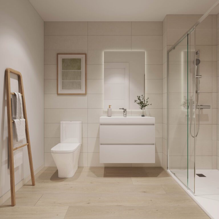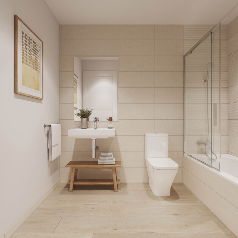 Un espacio privado para tu bienestar. Baños con acabados modernos y elegantes, donde cada detalle está pensado para tu comodidad.