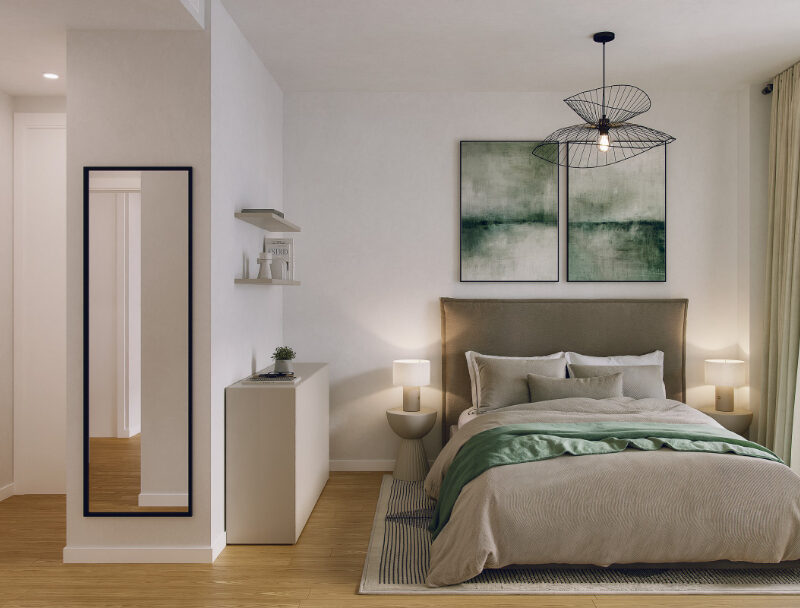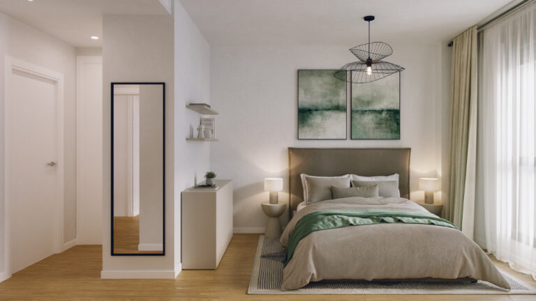 Un espacio de descanso que invita al confort. Habitaciones pensadas para tu bienestar, con acabados de alta calidad y diseño moderno. Despierta cada día en tu nuevo hogar Metrovacesa.