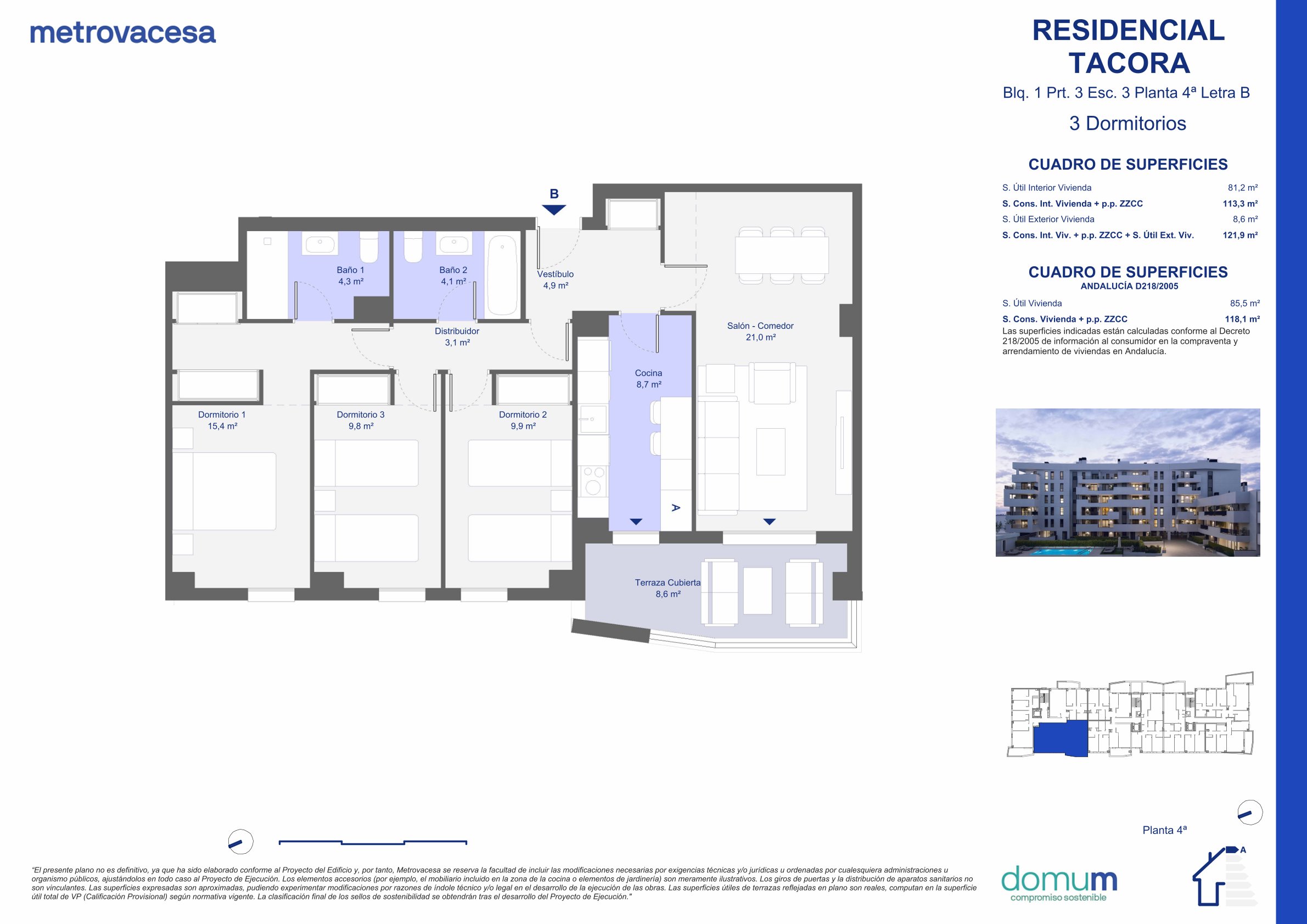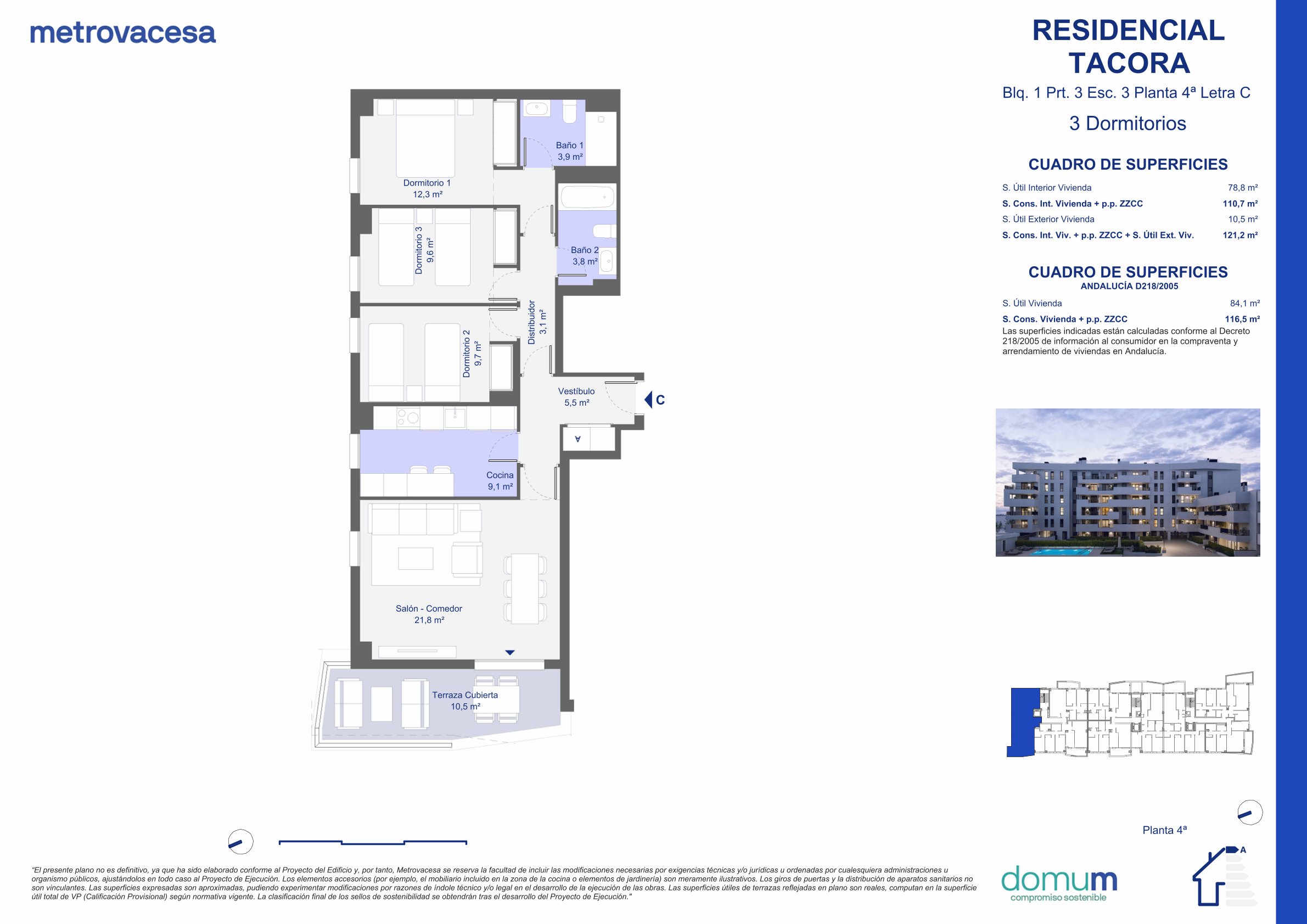 | 4 | 3 | 2 | 121.2 * | 10.5 | Ver plano | 326.500 € *** |