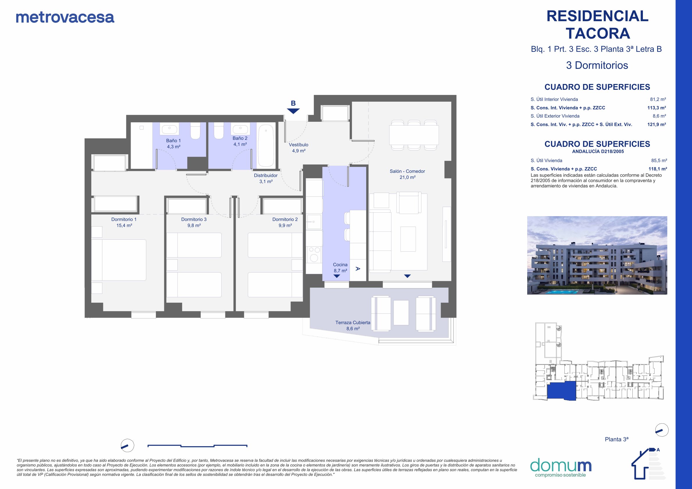 | 3 | 3 | 2 | 121.9 * | 8.6 | Ver plano | 328.500 € *** |
