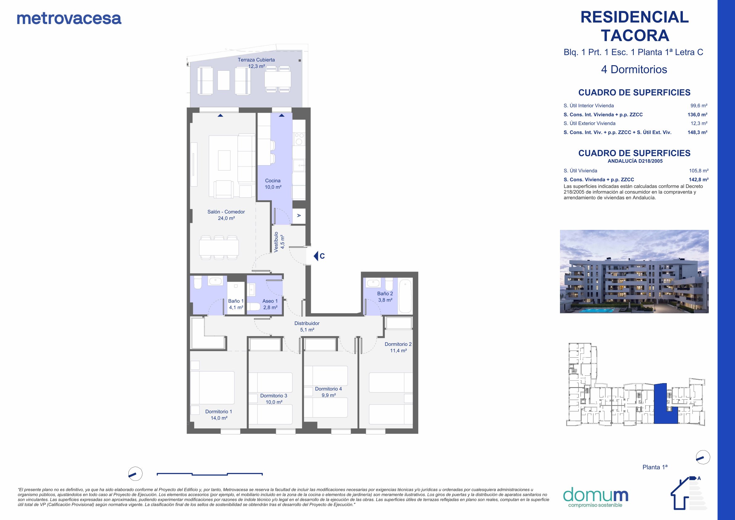 | 1 | 4 | 2 | 148.3 * | 12.3 | Ver plano | 380.000 € *** |