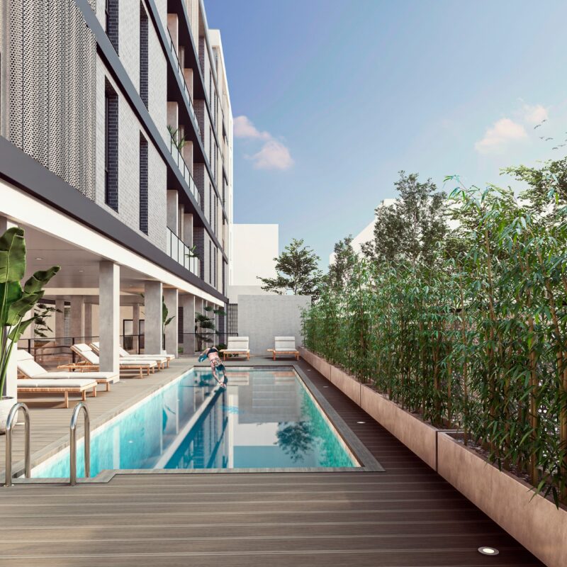 Un oasis de tranquilidad. Relájate y disfruta del sol junto a nuestra piscina, diseñada para que cada día se sienta como vacaciones. Calidad de vida en tu nuevo hogar.