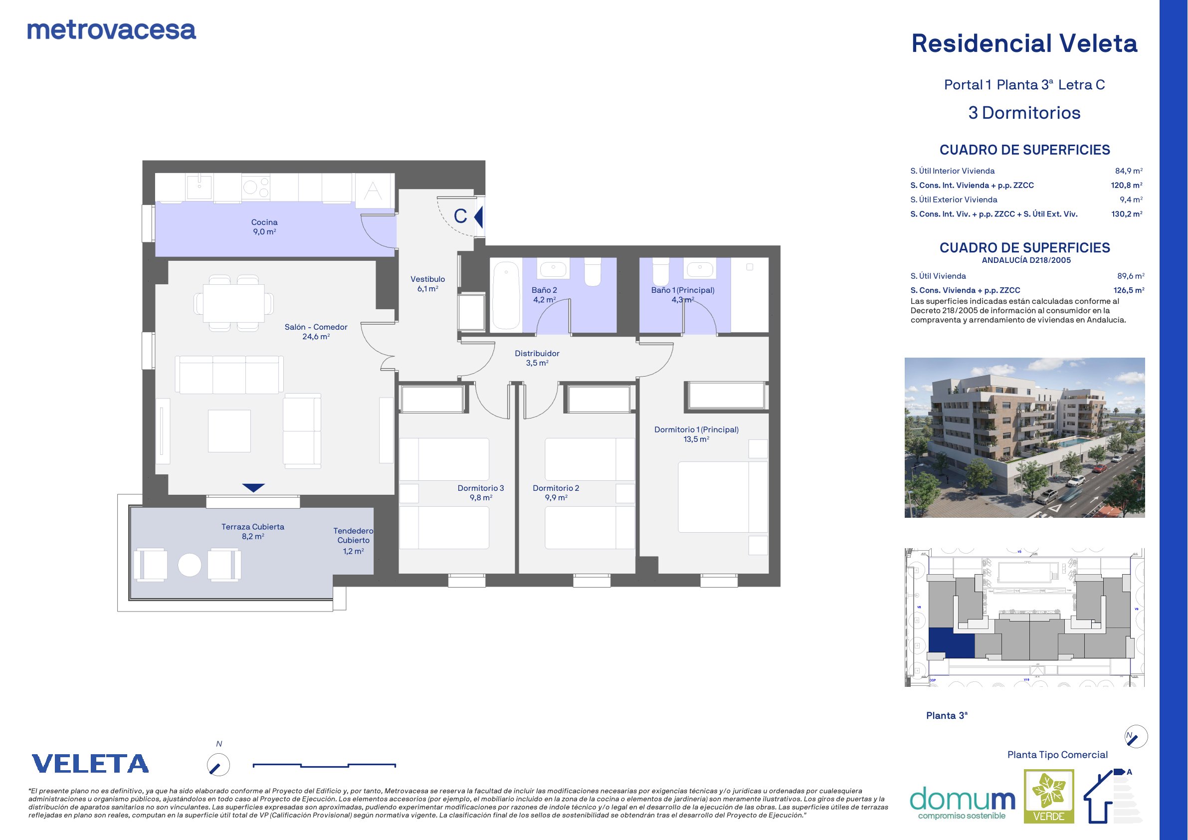 | 3 | 3 | 2 | 141.8 | 9.4 | Ver plano | 312.500 € ** |