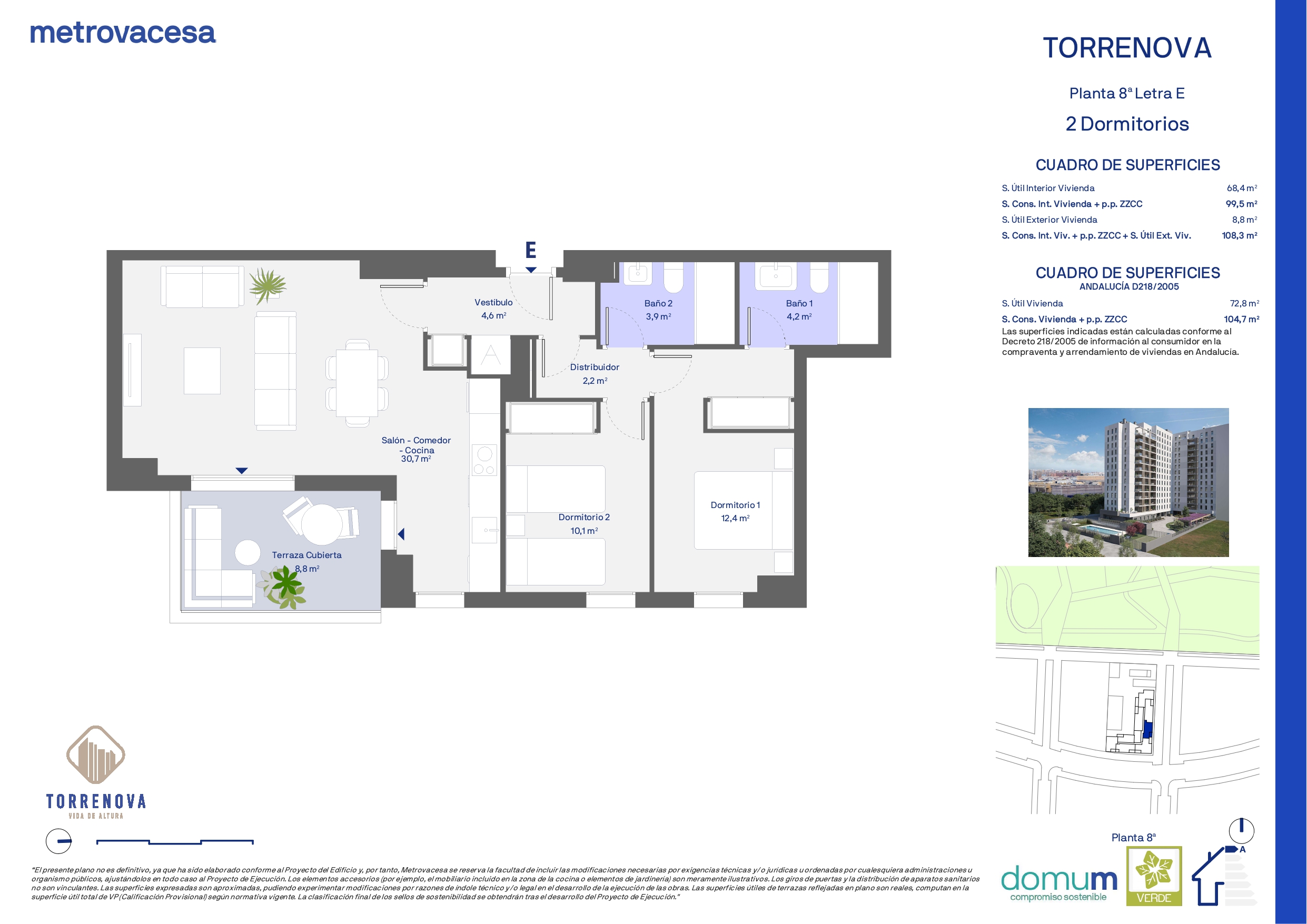 | 8 | 2 | 2 | 107.5 * | 8.8 | Ver plano | 381.500 € *** |