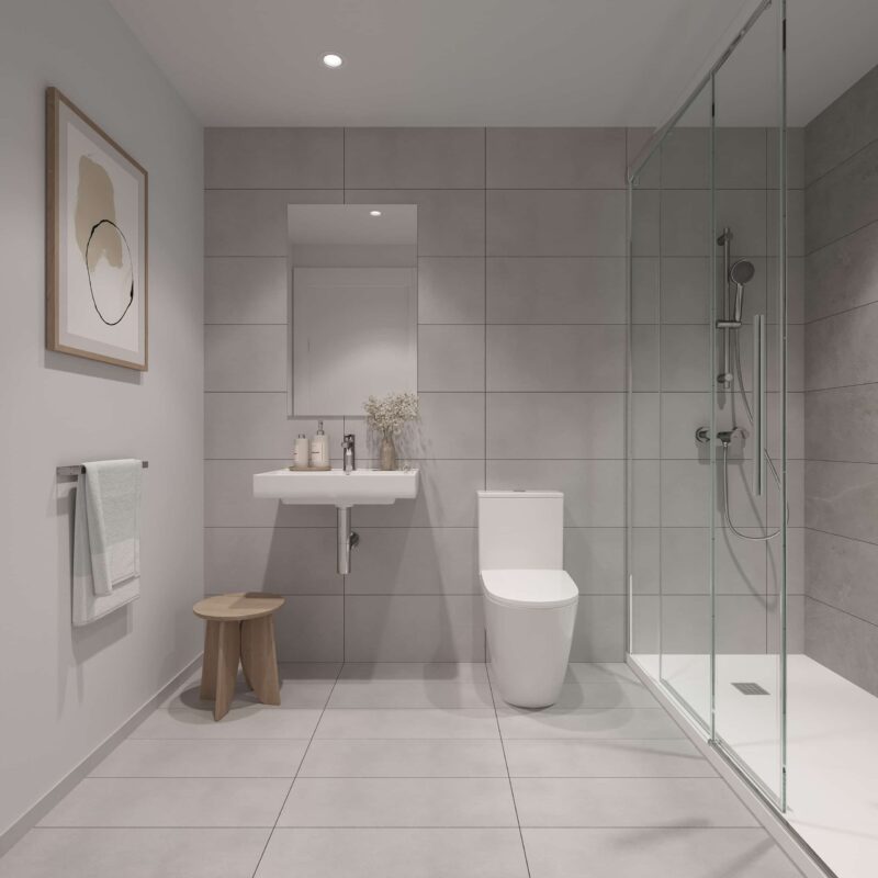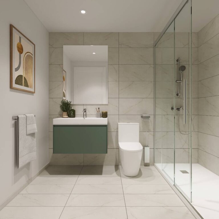 Un espacio privado para tu bienestar. Baños con acabados modernos y elegantes, donde cada detalle está pensado para tu comodidad.