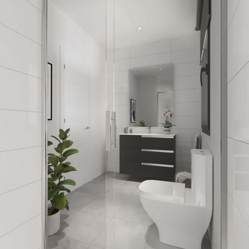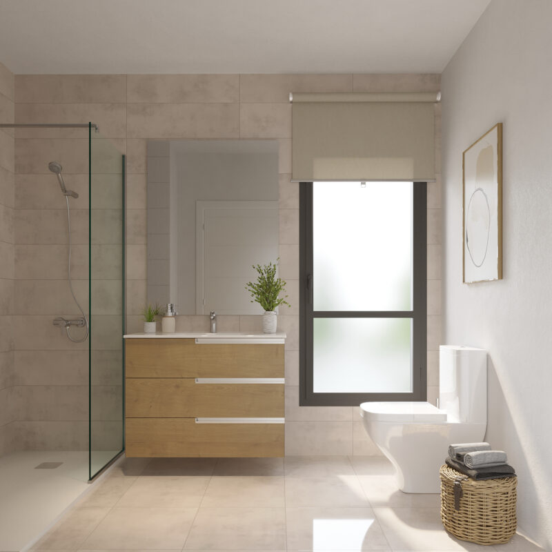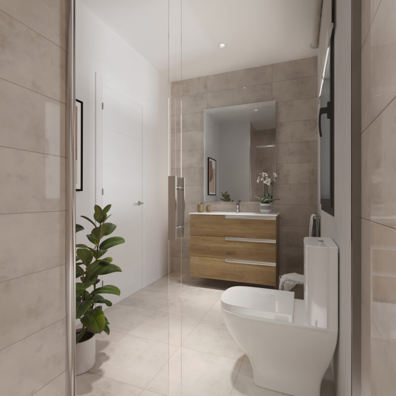 Un espacio privado para tu bienestar. Baños con acabados modernos y elegantes, donde cada detalle está pensado para tu comodidad.