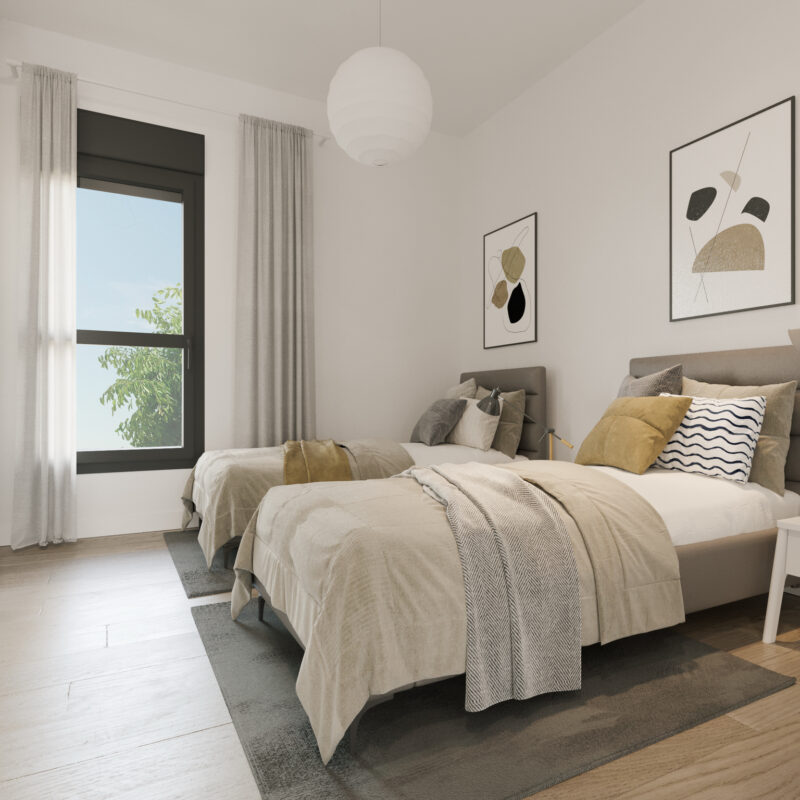 Un espacio de descanso que invita al confort. Habitaciones pensadas para tu bienestar, con acabados de alta calidad y diseño moderno. Despierta cada día en tu nuevo hogar Metrovacesa.