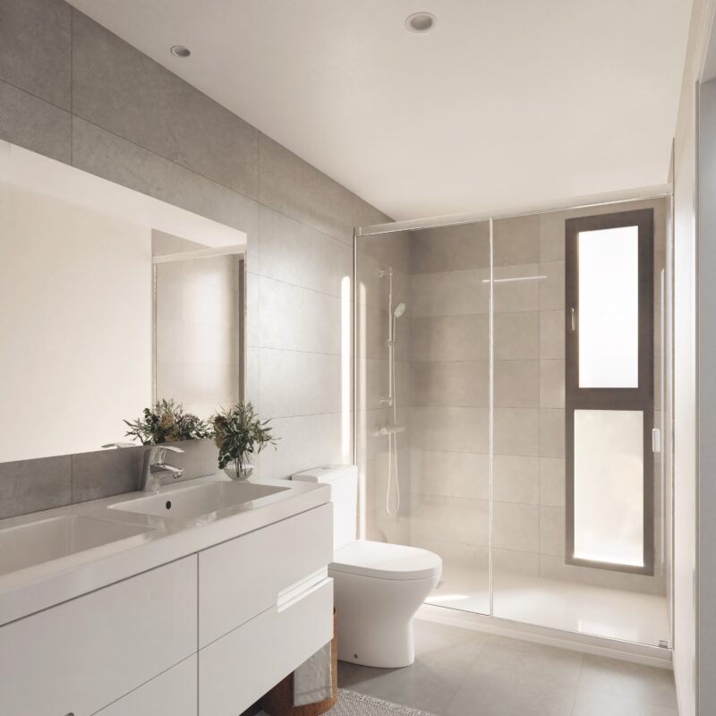 Un espacio privado para tu bienestar. Baños con acabados modernos y elegantes, donde cada detalle está pensado para tu comodidad.